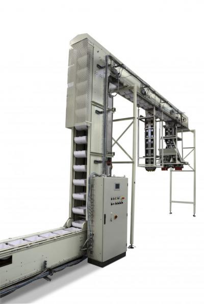 Systems of vision control, loading, conveying buckets and feeding of packaging groups for long goods.