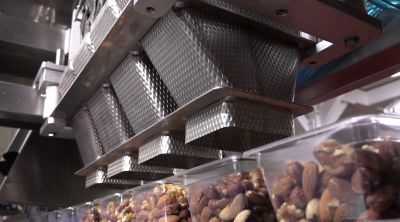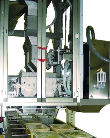 Dispositivo para la recogida de las pesadas de la balanza a combinación y el llenado de las bandejas.