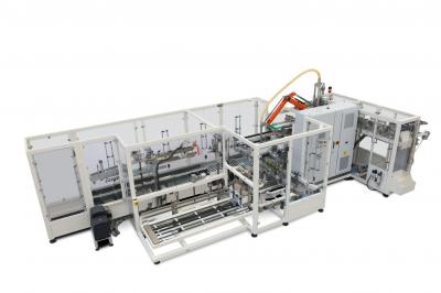 Encartonadoras automáticas para el llenado de cartones pre-enconlados tipo “Americano” (RSC) con solapas superiores o con tapadora. Cierre cinta adhesiva/cola.